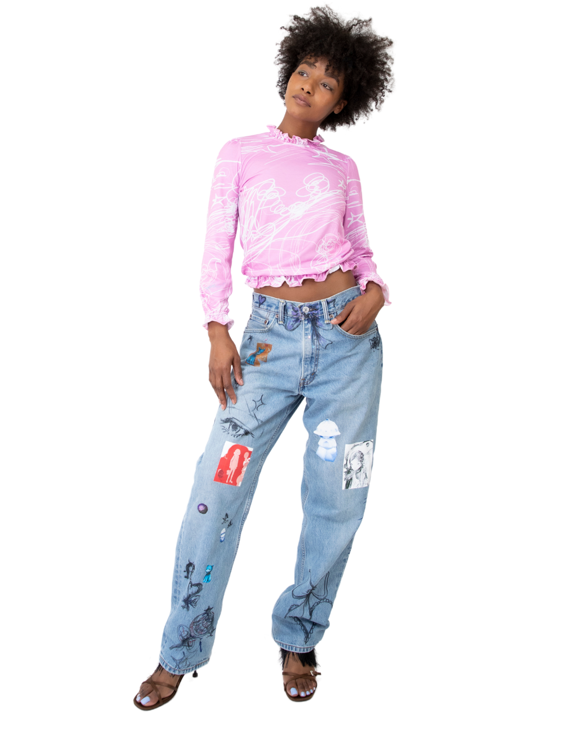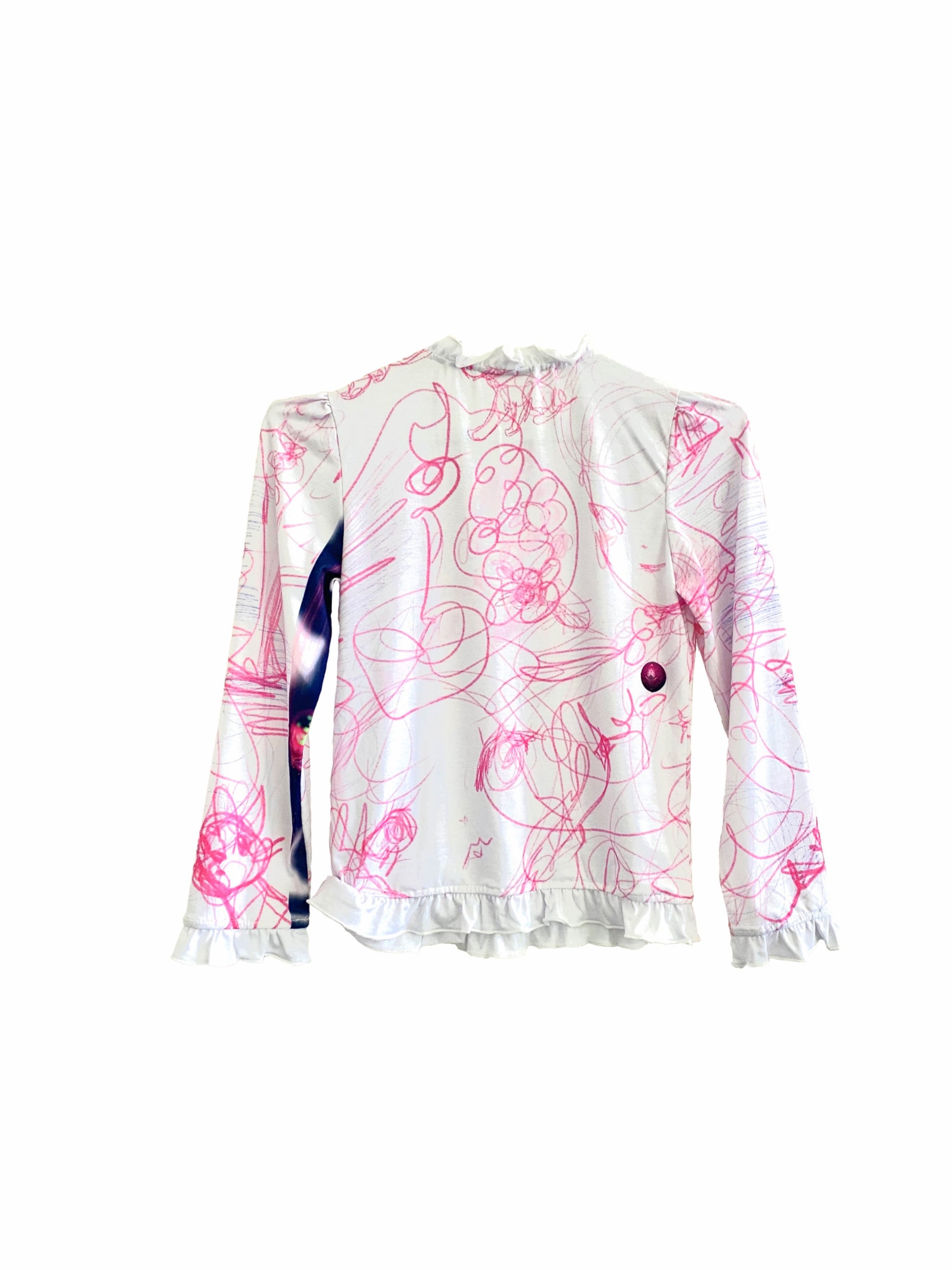 Sweet ruffle top with detail on collar and wrists. Last few left! Slight stretchy, so size accordingly <3