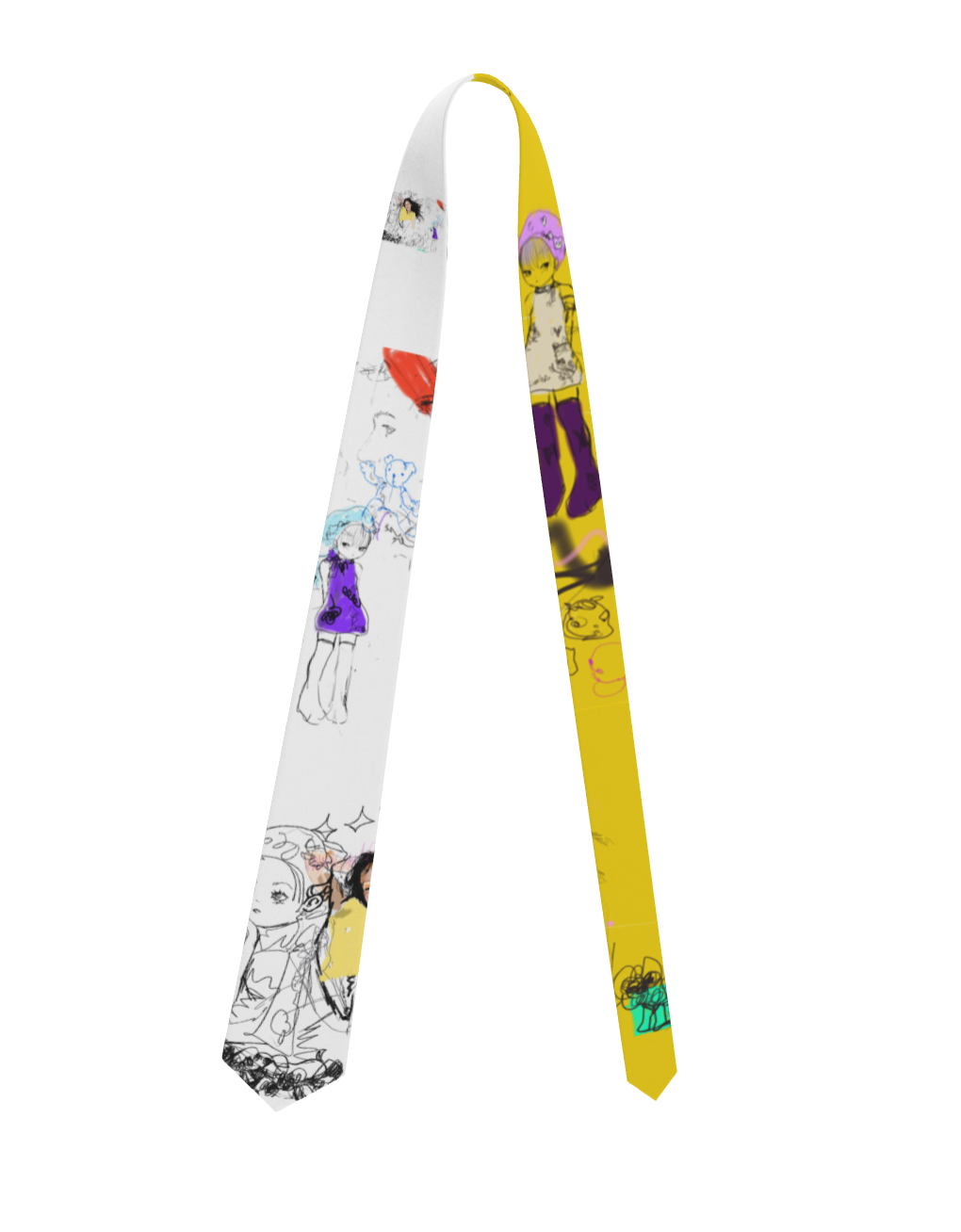 Scribble tie with Quick drawing '24. Dual side printed with slight sheen. Perfect and cute.