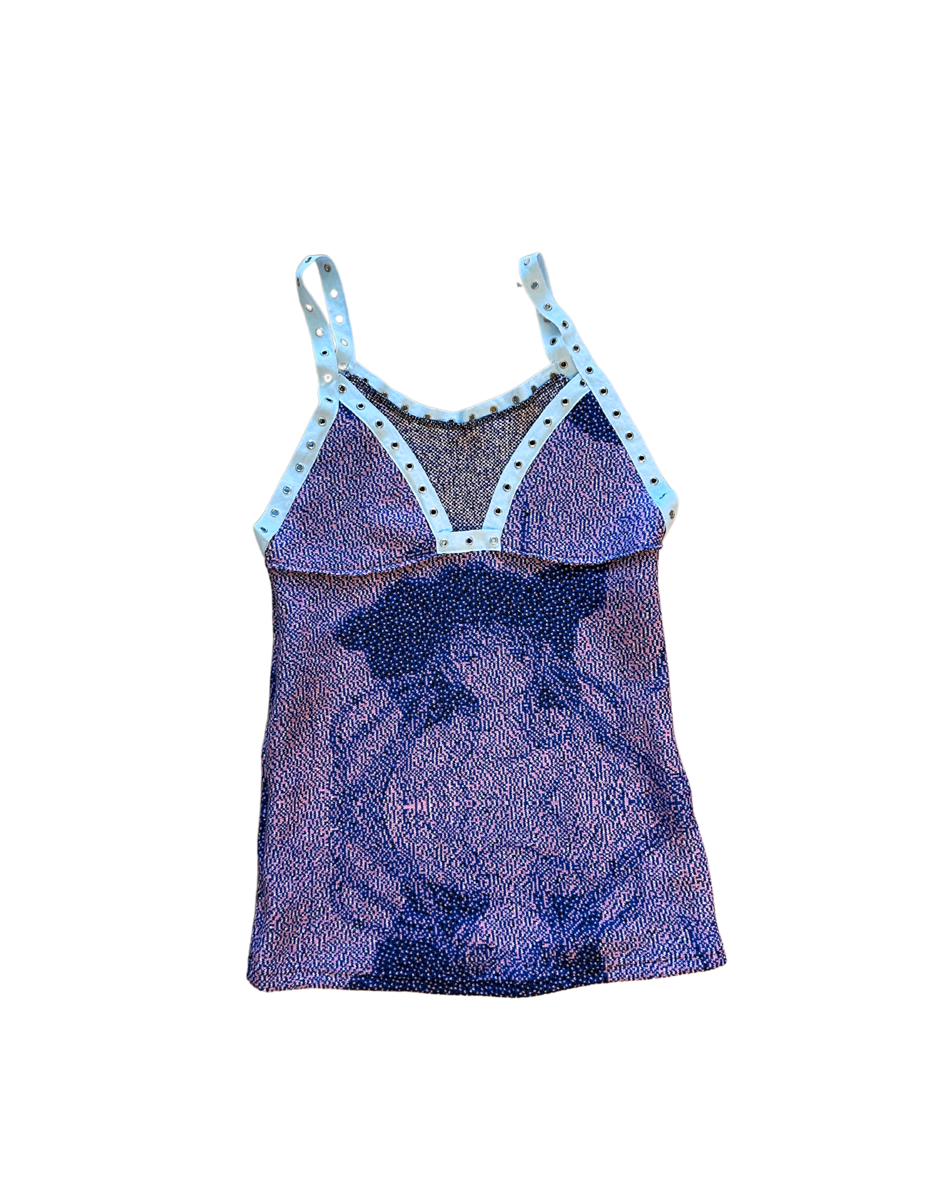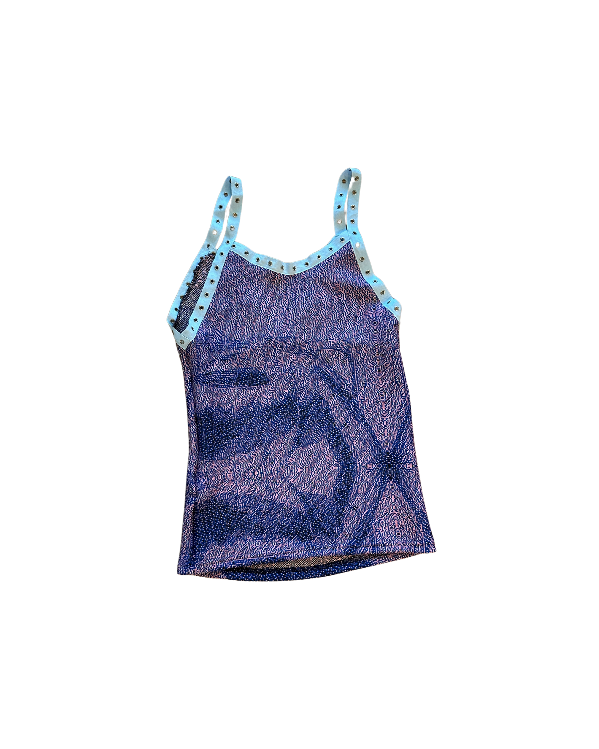 Sample top and one of its kind right now....Baby blue grommet finish. Cotton jacquard.